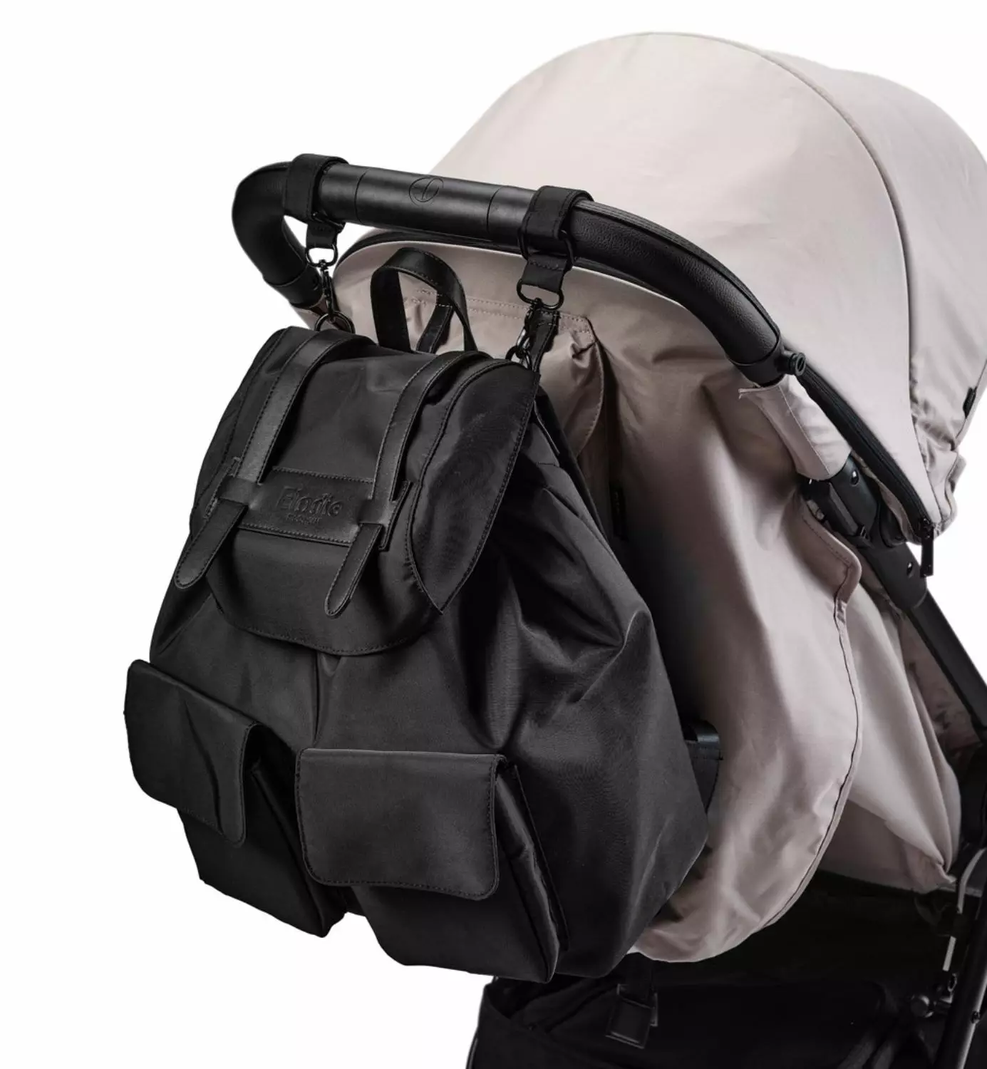 Voit kantaa reppua mukavasti selässä tai kiinnittää sen vaunujen työntöaisaan käyttäen ripustuskoukkuja.