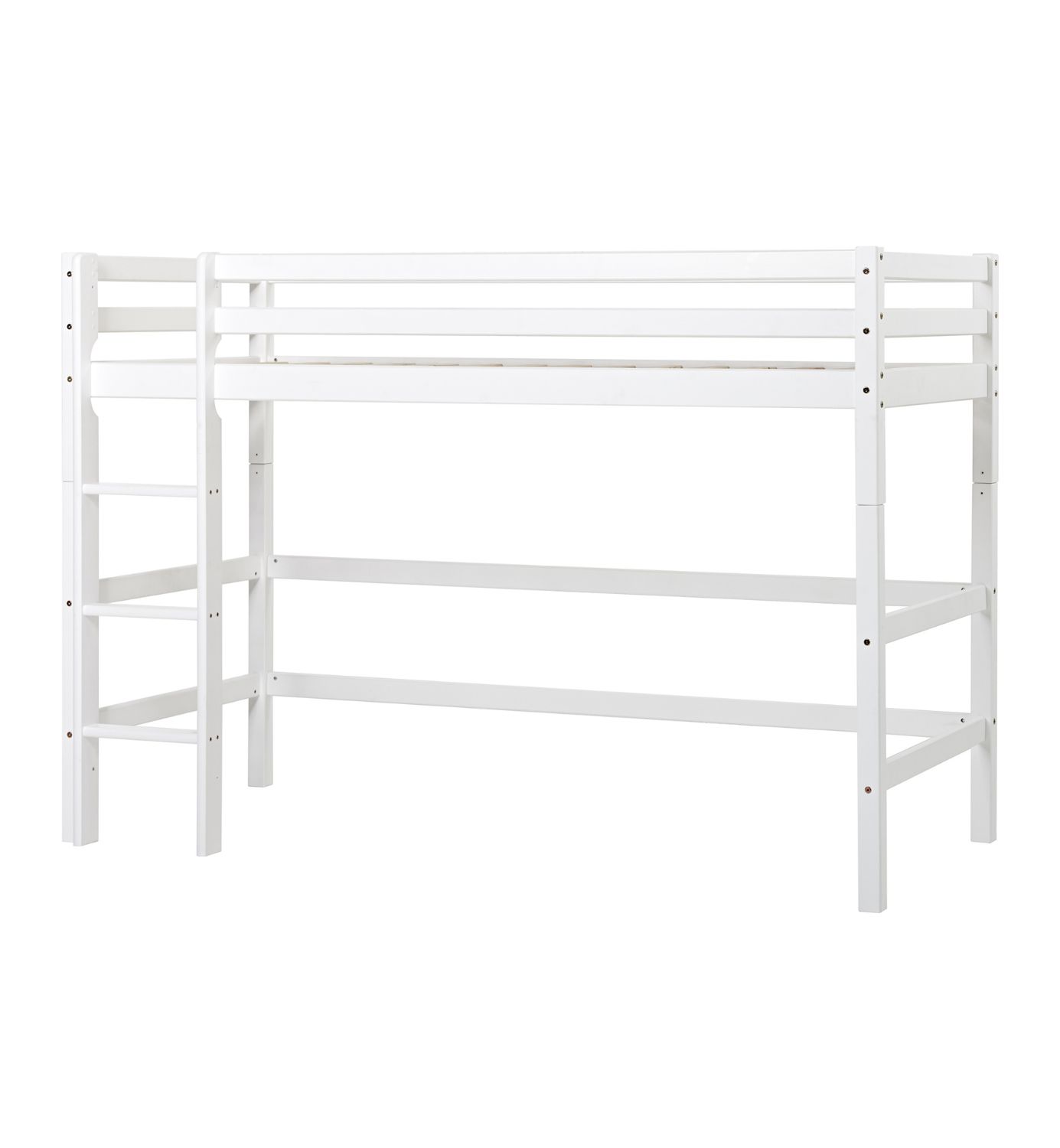 Käytännöllinen puoliparvi säästää lattiatilaa jättäen sängyn alle säilytys- tai leikkitilaa. Sänky on oikea tilaihme pieneenkin lastenhuoneeseen. Sänky sopii isommalle lapselle, joka osaa hyvin itse kiivetä tikkaita sänkyyn ja sieltä pois. Puoliparvisänky on valmistettu männystä ja sillä on Joutsen merkki, joten se täyttää kaikki EU standardit. Pintakäsittely on vesipohjaista lakkaa, jossa ei ole haitallisia kemikaaleja. Sängyn rappuset on kiinnitettävissä kumpaan päähän laitaa tahansa. Tilava 90 x 200 cm patjakoko mahdollistaa sängyn pitkäaikaisen käytön, sillä siinä on tilaa kasvaa. Sängyn painoraja on 100 kg, eli aikuinenkin voi yöpyä kerrossängyssä.