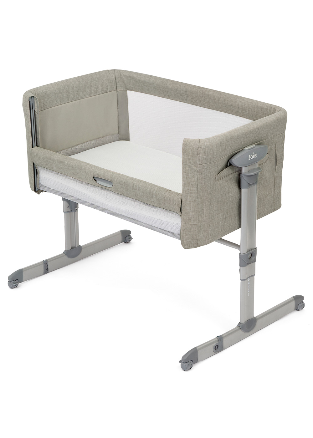 Joie Roomie Glide vauvan sängyn ansiosta voit nukkua vauvasi kanssa aiva lähekkäin ilman että jaatte sänkyä. Laskettavan laidan ansiosta vauva on helppo nostaa viereen ja takaisin omaan kehtoonsa ilman, että sinun tarvitsee nousta sängystä. Roomie Glide kehto on säädettävissä yhteentoista eri korkeuteen, jolloin sen saa optimaaliselle korkeudelle oman sängyn viereen. Kehdossa on lukittava keinumisominaisuus ja sängyn päätyosan pystyy nostamaan korkeammalle esimerkiksi vauvan ollessa nuhainen. Pehmeät seinämät ovat turvalliset ja erittäin hengittävät. Kehdon mukana tulee kiinnityshihnat, joilla sen saa sidottua napakasti kiinni omaan sänkyyn. Mikäli sängyn runko ylettyy lattiaan saakka, saa kehdon jalakset käännettyä sisäänpäin, jolloin kehdon saa tiiviisti oman sängyn viereen. Kehdon jaloissa on lukittavat pyörät, mitkä helpottavat kehdon siirtelyä.