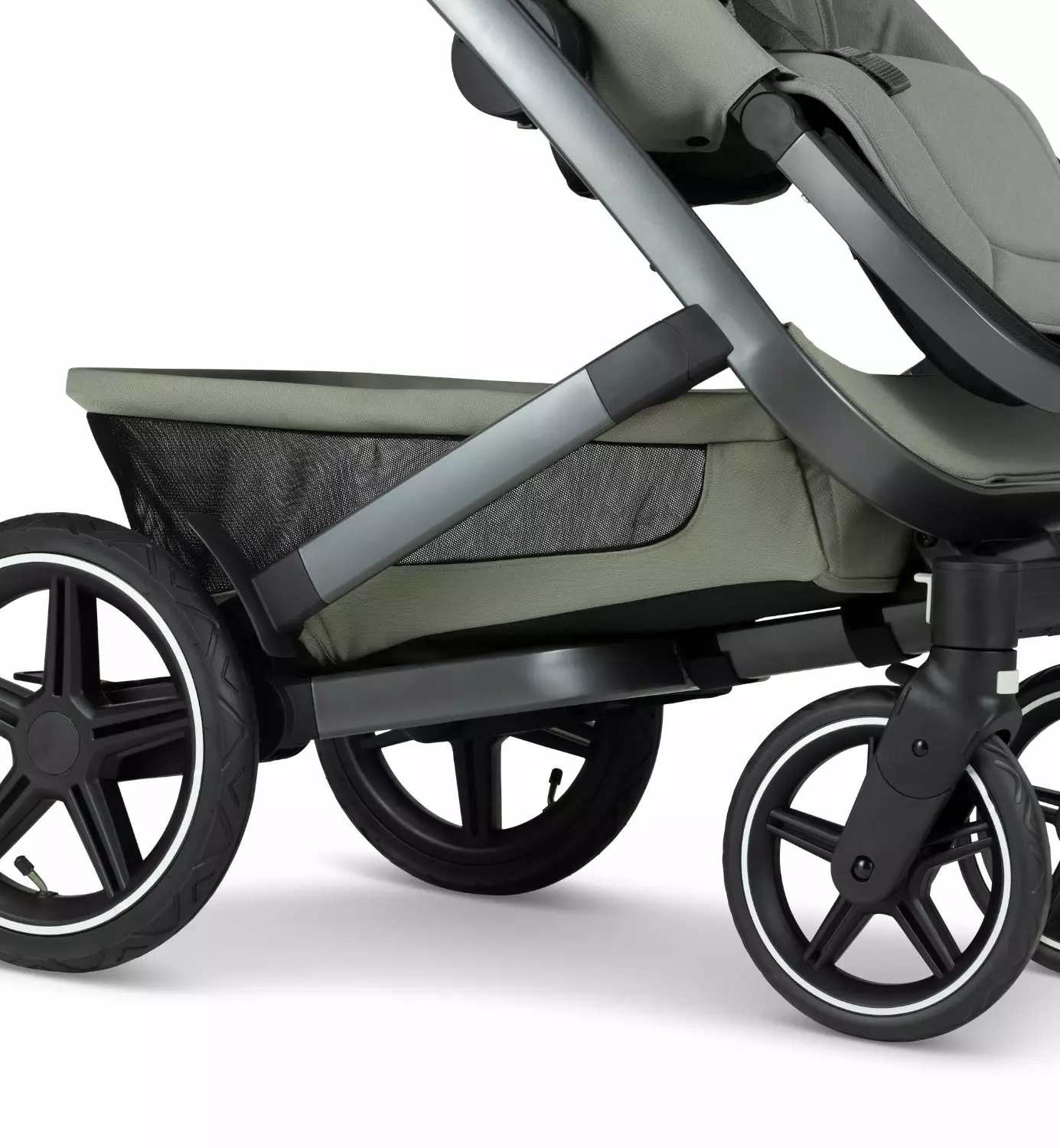 Kaikille maastoille soveltuvat ilmakumirenkaat lastenvaunuihin rullailevat kevyesti metsäpoluilla ja epätasaisilla alustoilla.