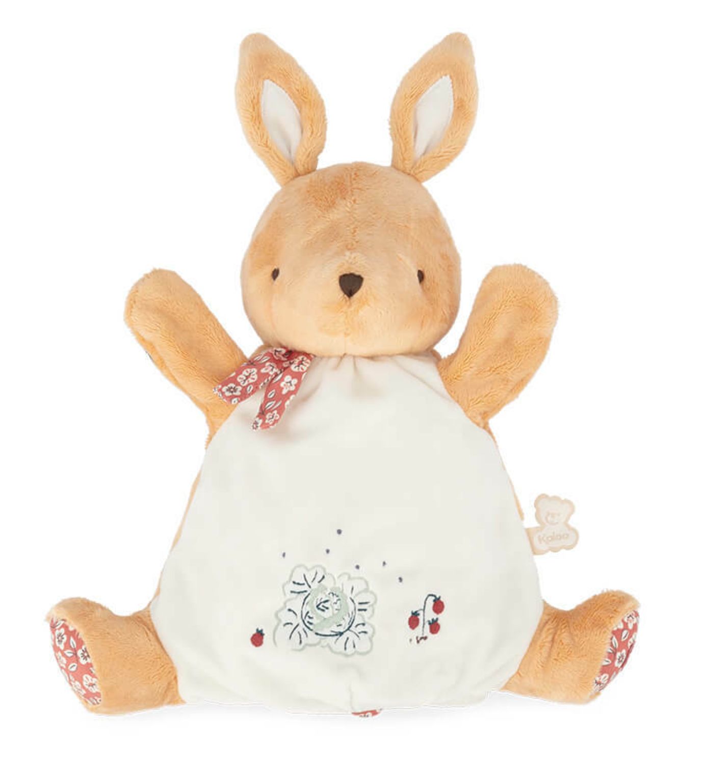 Kukkuluuruu! Esitys alkaa! Mistä pupu kurkistaa? Suloisen käsinuken kanssa juttelu on jännittävää ja saa aikaan kikatuksen. Käsinukesta löytyy hauskoja yksityistkohtia ja siitä voi napata kiinni. Pehmeä pupu ystävä kutittelee masua ja kainaloa. Käsinukke on loistava väline aikuisen ja lapsen väliseen vuorovaikutukseen. Sen voi myös napata kainaloon vaikka päiväunikaveriksi. Lapsen kasvaessa käsinukella on mukava leikkiä mielikuvitusleikkejä ja tehdä esityksiä. Käsinukke sopii aikuiseen käteen.