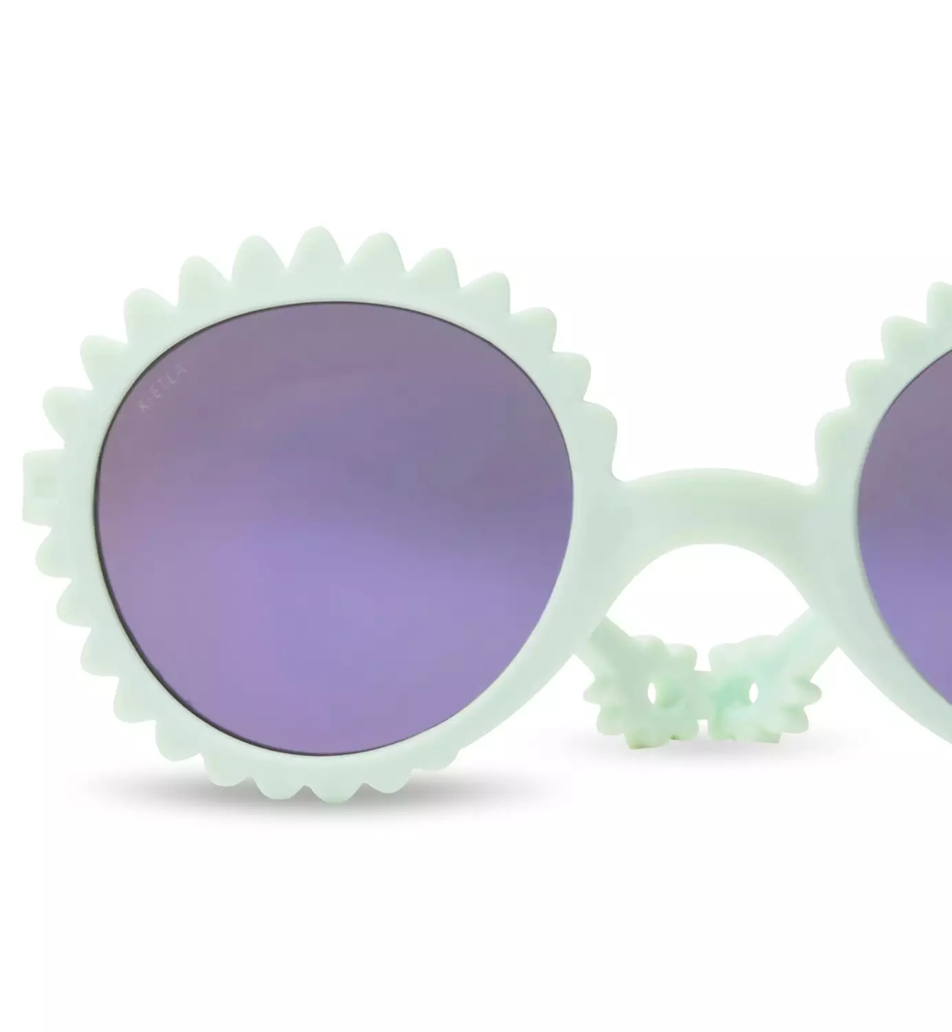 1–2-vuotiaille tarkoitetuissa KiETLA Fleur aurinkolaseissa on tehokas 100% UV-suoja, kestävä rakenne ja lapselle mieluisa muotoilu. Pyöreä pantos-linssi ja terälehtiä muistuttava kehys tekevät laseista sekä suloiset että käytännölliset.