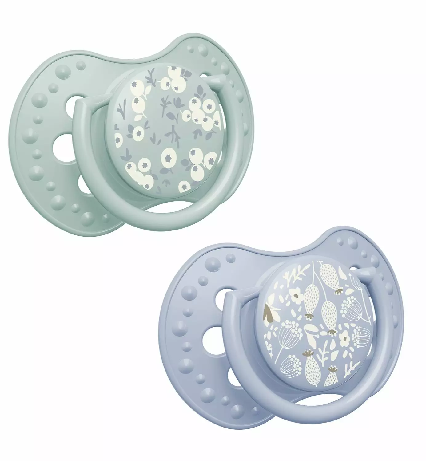 - Paketti sisältää kaksi tuttia, kaksi tutin suojakupua sekä säilytysrasian