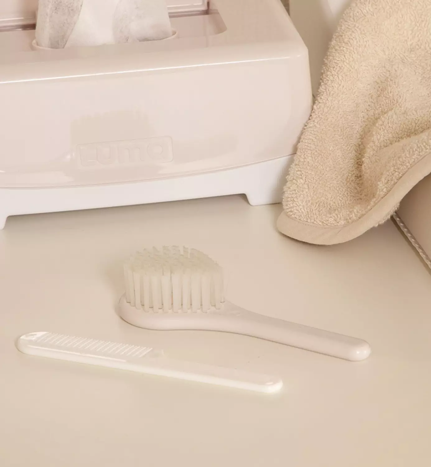 LUMA harja- ja kampasetti tekee vauvan hiustenhoidosta lempeää ja turvallista. Hellävarainen harja sopii täydellisesti vastasyntyneen herkälle päänahalle ja auttaa myös karstan hoidossa. Kampa puolestaan selvittää pehmeästi tuuheammatkin hiukset.