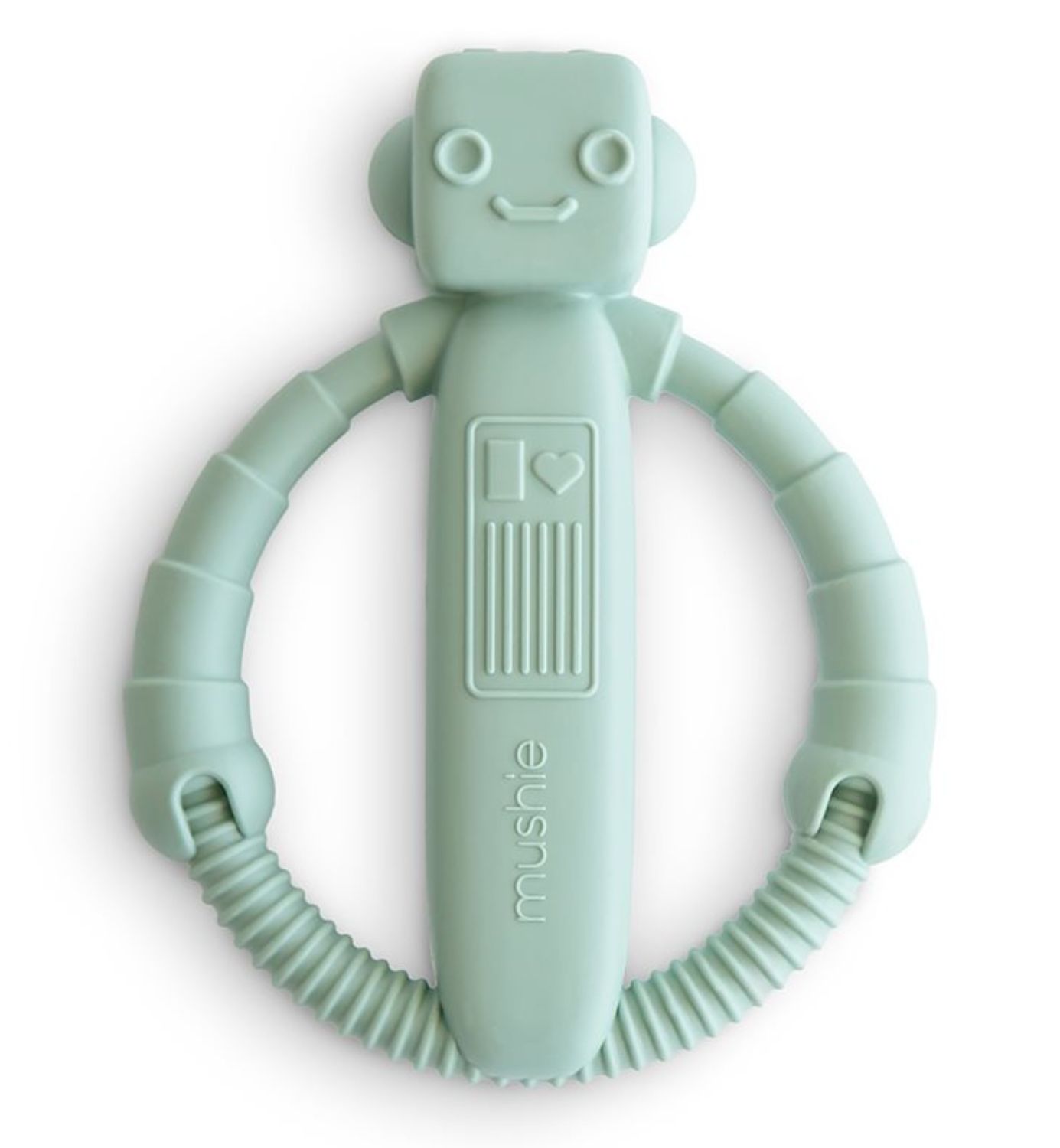 Hauska robotti helpottaa kutisevia ikeniä hampaiden puhjetessa. Purulelusta löytyy monta erilaista pintaa ja se on muotoiltu niin että pienellä kädellä saa helposti otteen. Robotti on paitsi purulelu, myös helistin!