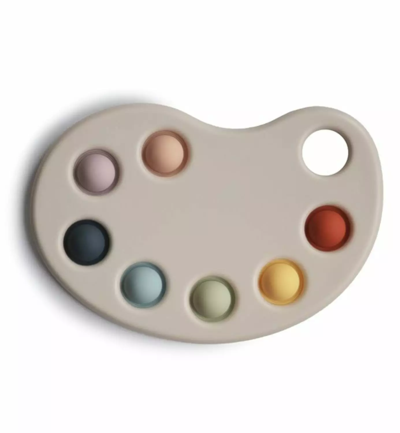 Väripalettimainen "press toy"-painelulelu kehittää lapsen hienomotoriikkaa painettavien ja poksautettavien maalikuplien avulla.