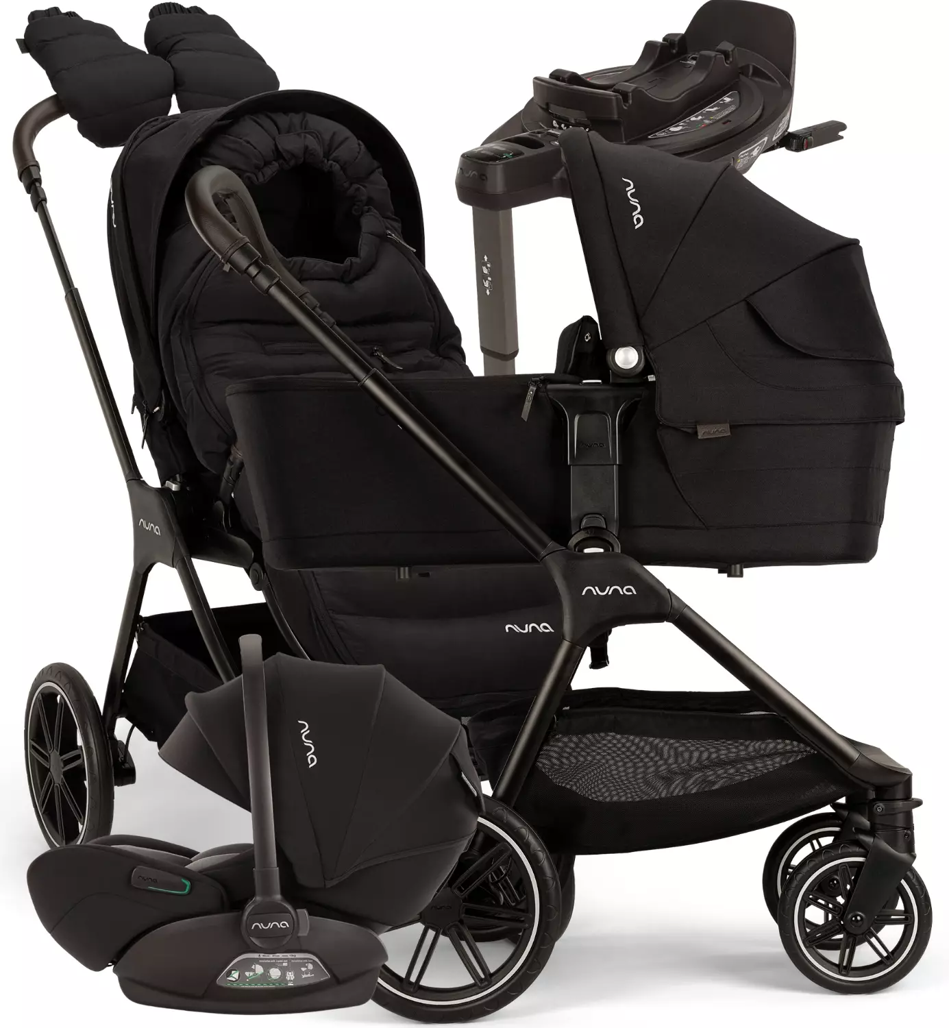 Nuna Triv™ LX All-Season Starttipaketti on täydellinen setti vauvan kanssa liikkumiseen – ympäri vuoden. Paketti sisältää Triv LX -yhdistelmävaunut, Triv LX -vaunukopan, säädettävät adapterit (vaunukopalle ja turvakaukalolle, talvivarustepaketin sekä sadesuojat niin ratasosaan kuin koppaan.