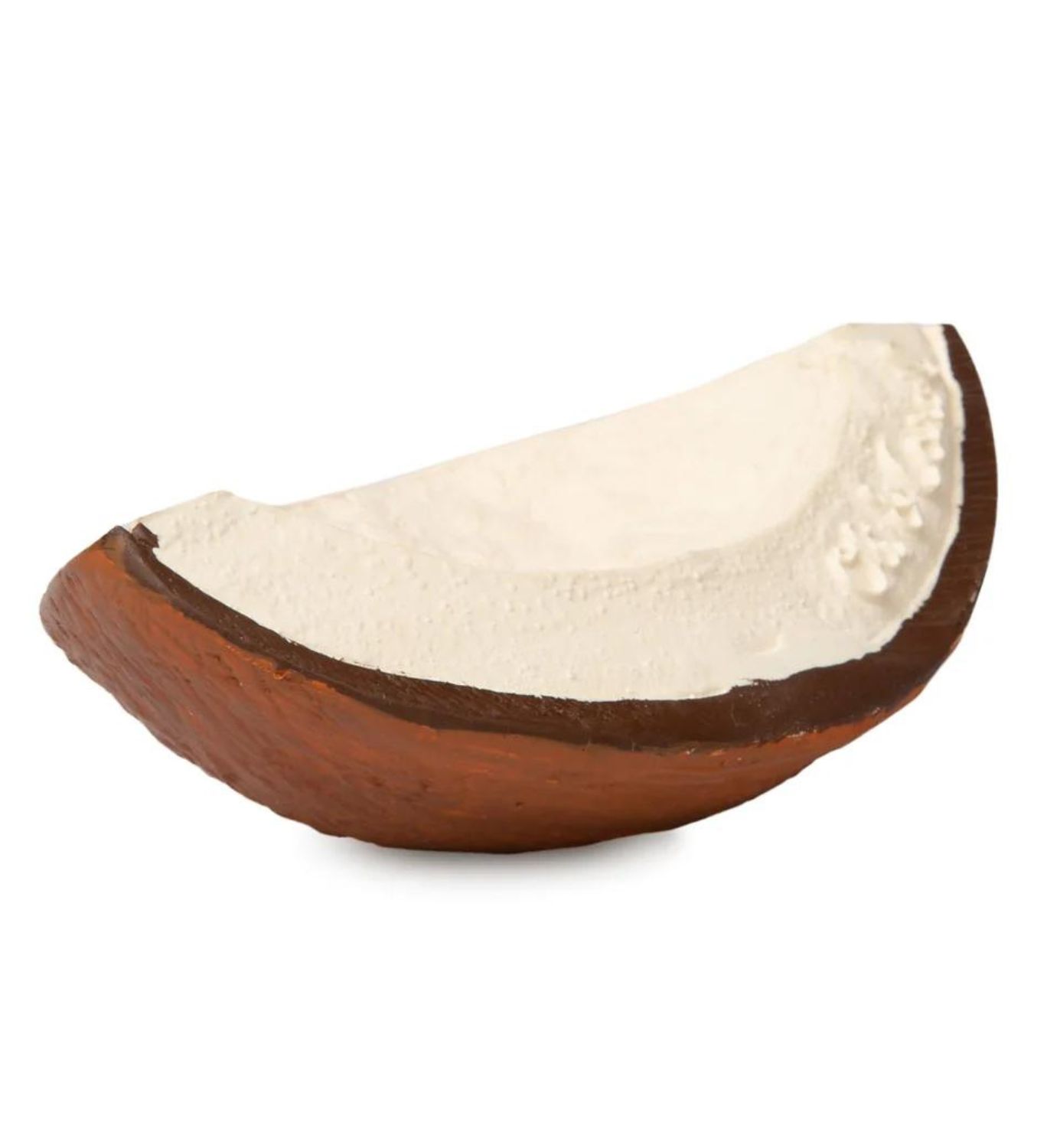 Purulelu upeilla tekstuureilla helpottaa vauvan kutisevia ikeniä ja on samalla kiva aistilelu. Coco the Coconut on valmistettu perinteisin menetelmin ympäristöystävällisesti ja kestävän kehityksen mukaisesti. Lelu on täysin reiätön, eli valmistettu yhdestä palasta, mikä takaa hygienisyyden koska sisään ei pääse kertymään bakteereita tai hometta. Toimii myös hauskana kylpyleluna, taaperoiden leikeissä ja vaikka koristeena.
