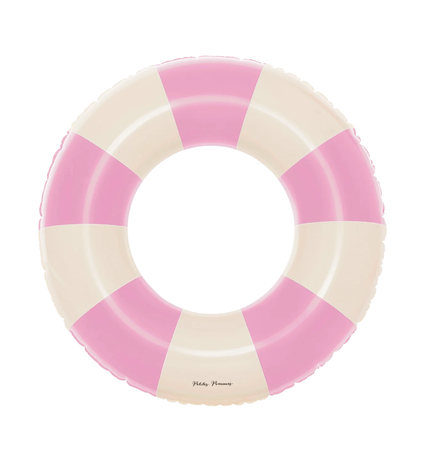 Petites Pommes on herättänyt henkiin entisajan lapsuuden klassikon - uimarenkaan! Tämä uimarengas on valmistettu pitäen silmällä yksityiskohtia ja laadukkuutta. 0,25 mm paksuinen muovi on kestävää ja mukava käyttää, sauma on piilotettu sisäpuolelle jottei se hierrä. Kaikki Petite Pommesin tuotteet on maalattu käsin, joten pieniä sävyvaihteluita voi esiintyä.