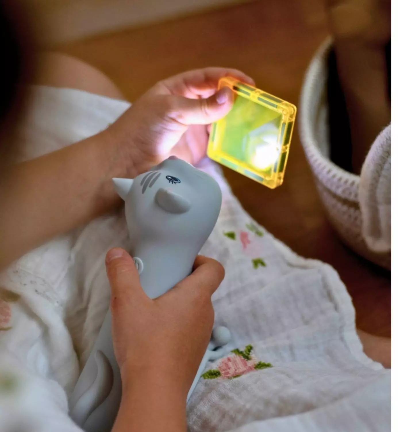 Taskulamppu on pehmeästä silikonista valmistettu hauska ja käytännöllinen valaisin, joka kulkee mukana iltaseikkailuissa, leikeissä ja satutuokioissa. Kissan muotoinen taskulamppu syttyy sopivasti pienten käsien kosketuksesta ja sen kirkkauden voi säätää tilanteen mukaan – pehmeä yövalo tai kirkas valo seikkailuun!