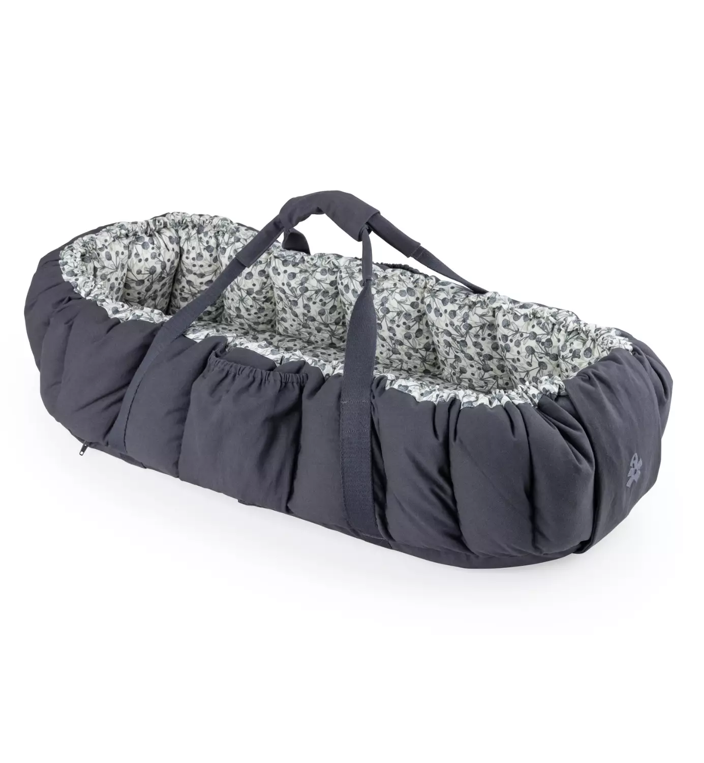 Kantokassina toimivassa unipesässä on tukevat kahvat, jotka voidaan kiinnittää yhteen turvallisen kantamisen varmistamiseksi. Kahdessa kätevässä sivutaskussa säilytystilaa esimerkiksi tuteille ja pientavaroille.