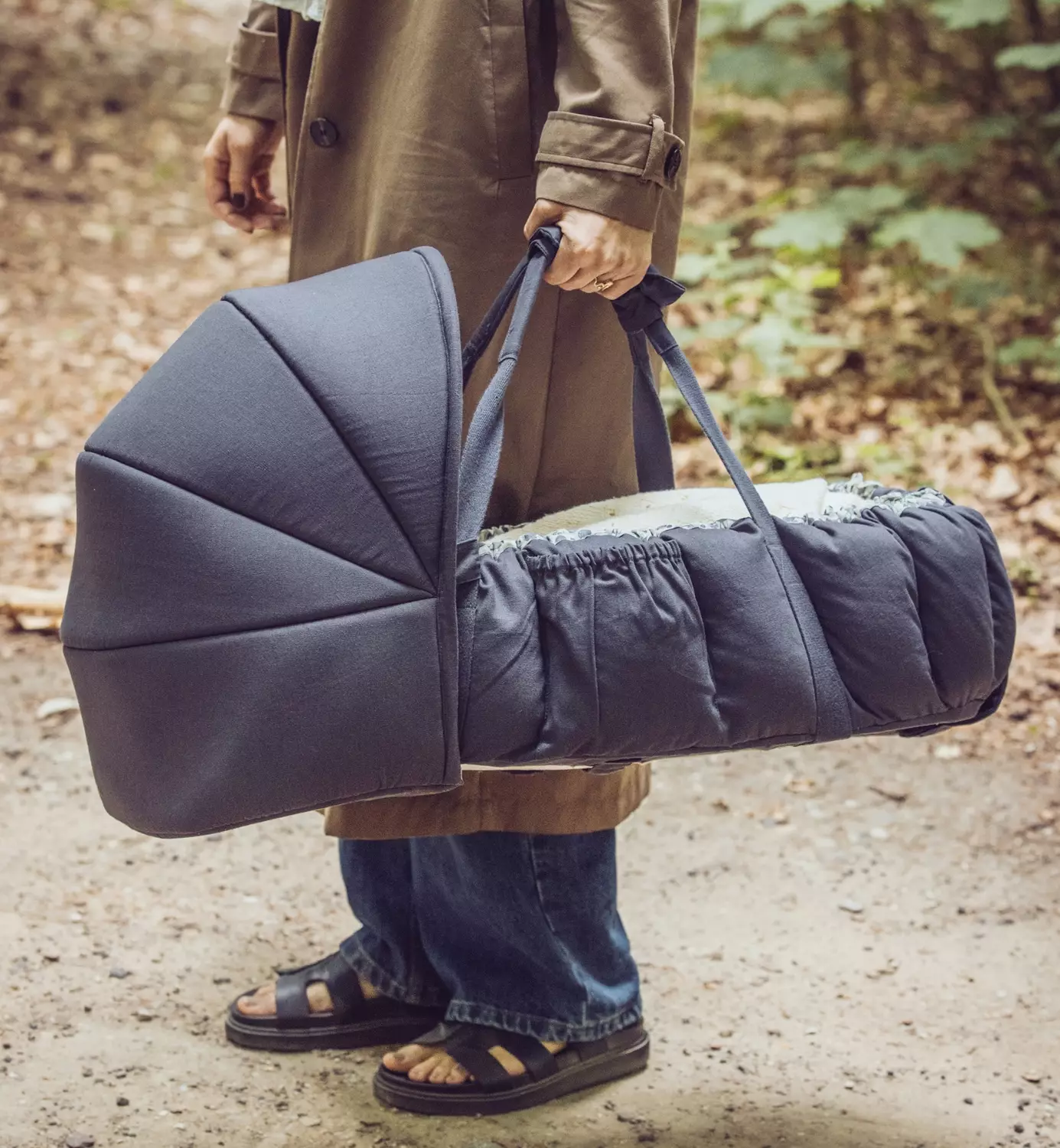 Kevyt rakenne ja käytännölliset kantokahvat tekevät unipesästä helpon siirtää huoneesta toiseen tai ottaa mukaan matkalle. Avattavat reunat muuttavat unipesän suureksi pehmeäksi leikkimatoksi tai alustaksi vaipanvaihtoon, mikä lisää käyttöikää ja monipuolisuutta.