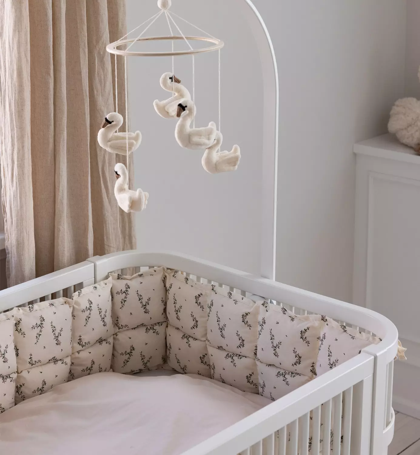 Pehmeä ja turvallinen pesä pinnasänkyyn Sebran ylellisellä reunapehmusteella