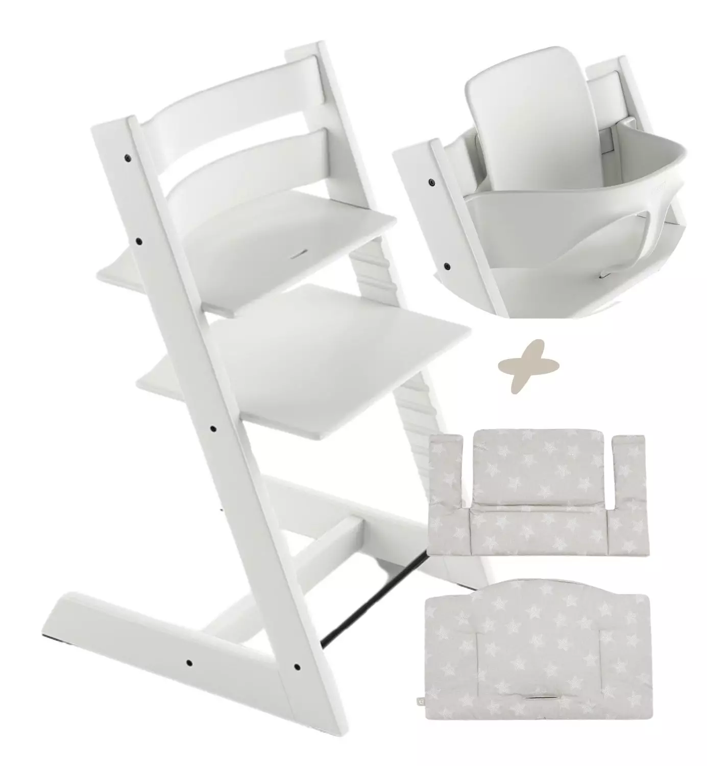 Etsitkö monikäyttöistä, ergonomista ja tyylikästä syöttötuolia, joka kestää vuosia? Stokke Tripp Trapp Starttipaketti sisältää Tripp Trapp tuolin, Baby Set -vauvasetin ja pehmusteen, jotta vauvasi ruokailuhetket ovat alusta asti mukavia ja turvallisia.