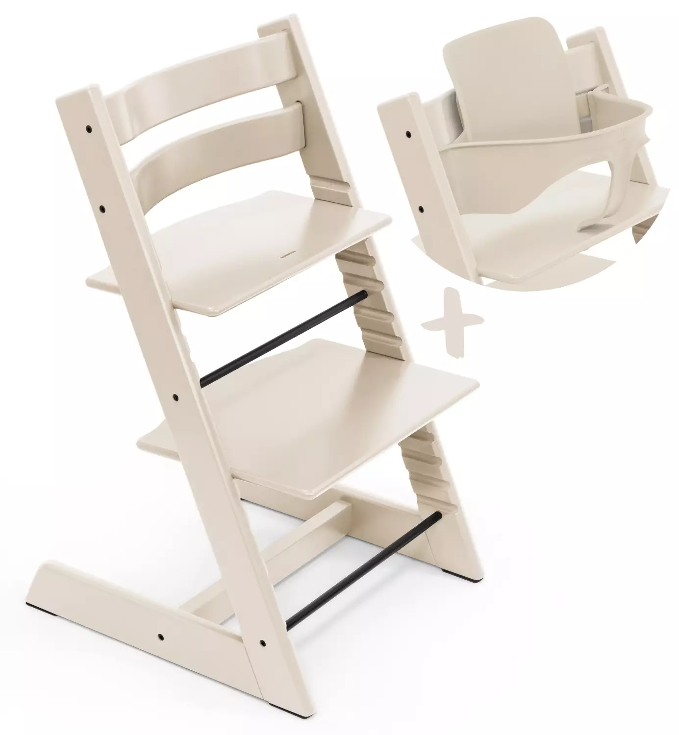 Stokke Tripp Trapp Baby Set -vauvasetti muuntaa Tripp Trappin syöttötuoliksi, joka soveltuu vauvalle noin puolivuotiaasta alkaen, kun hän osaa istua ilman tukea. Vauvasetissä on hyvä ergonominen tuki selälle ja se antaa myös hyvän sivutuen. Siinä on myös kiinteä haarakappale, joka estää lasta luisumasta pois vauvasetistä.