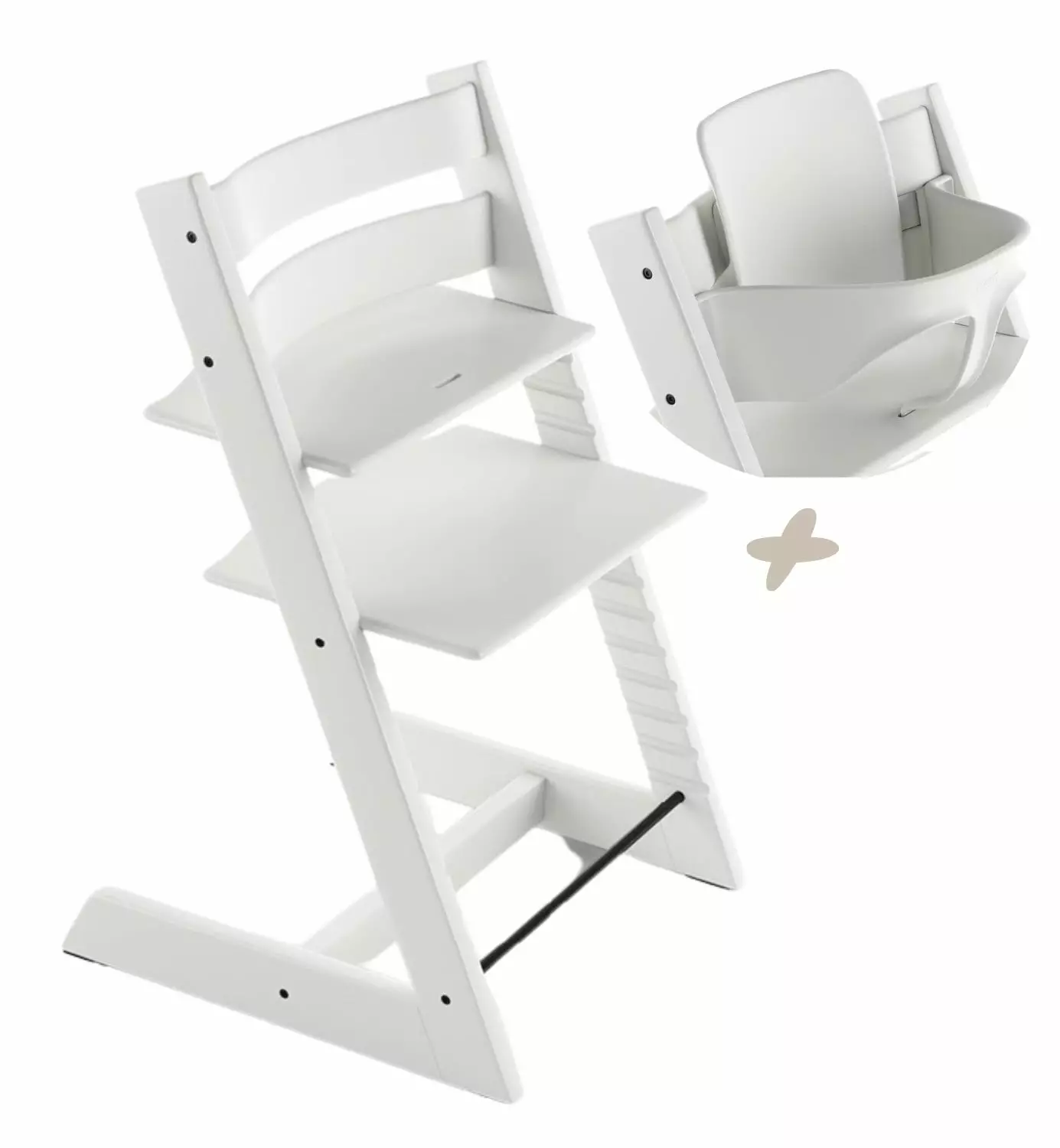 Stokke Tripp Trapp Baby Set -vauvasetti muuntaa Tripp Trappin syöttötuoliksi, joka soveltuu vauvalle noin puolivuotiaasta alkaen, kun hän osaa istua ilman tukea. Vauvasetissä on hyvä ergonominen tuki selälle ja se antaa myös hyvän sivutuen. Siinä on myös kiinteä haarakappale, joka estää lasta luisumasta pois vauvasetistä.