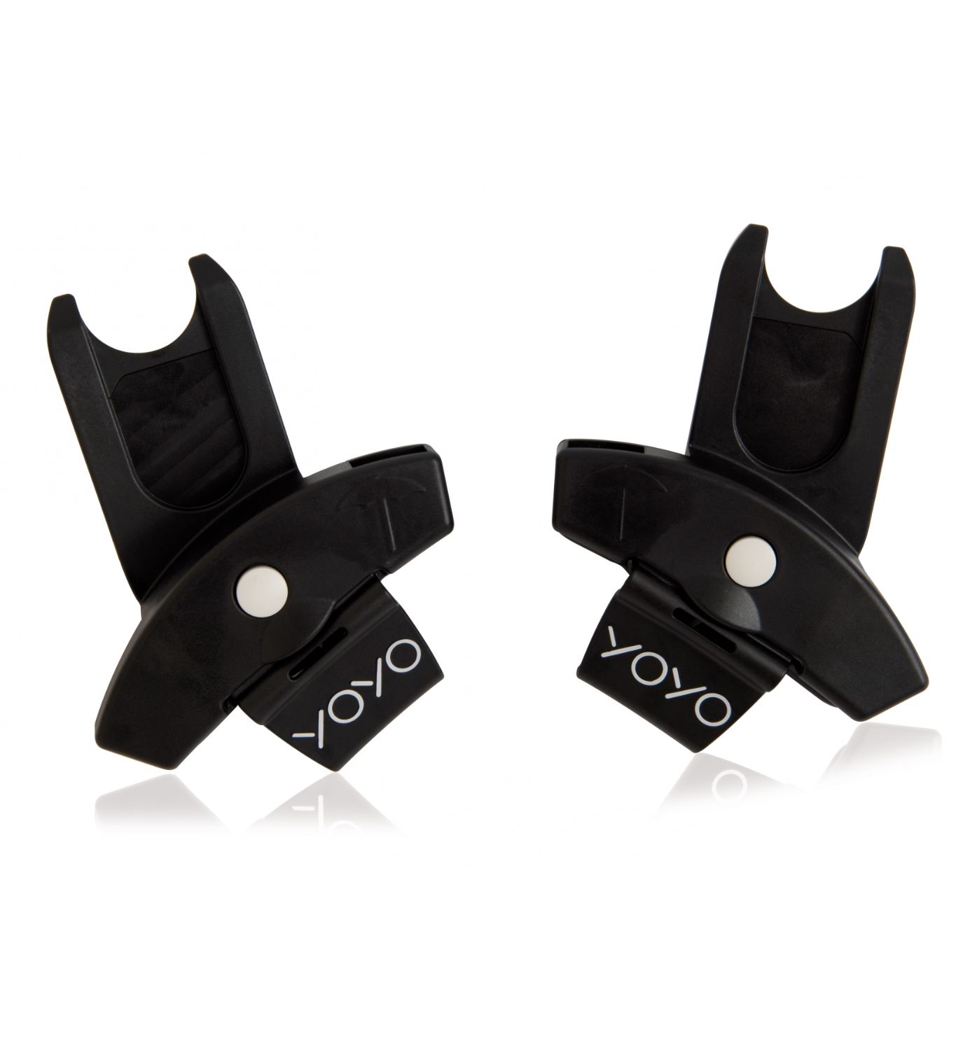 Kiinnitä turvakaukalo Yoyo2 ja Yoyo3 rattaiden runkoon kätevillä kaukaloadaptereilla. Adapterit kiinnittyvät runkoon kahdessa osassa, ydinpalaset tulevat suoraan kiinni runkoon ja itse adapteriosuus ydinpalasiin. Näin voit kasata rattaat helposti irroittamalla vain adapterit ydinpalasista, jolloin niiden kiinnitys paikalleen ja pois onnistuu nopeasti.