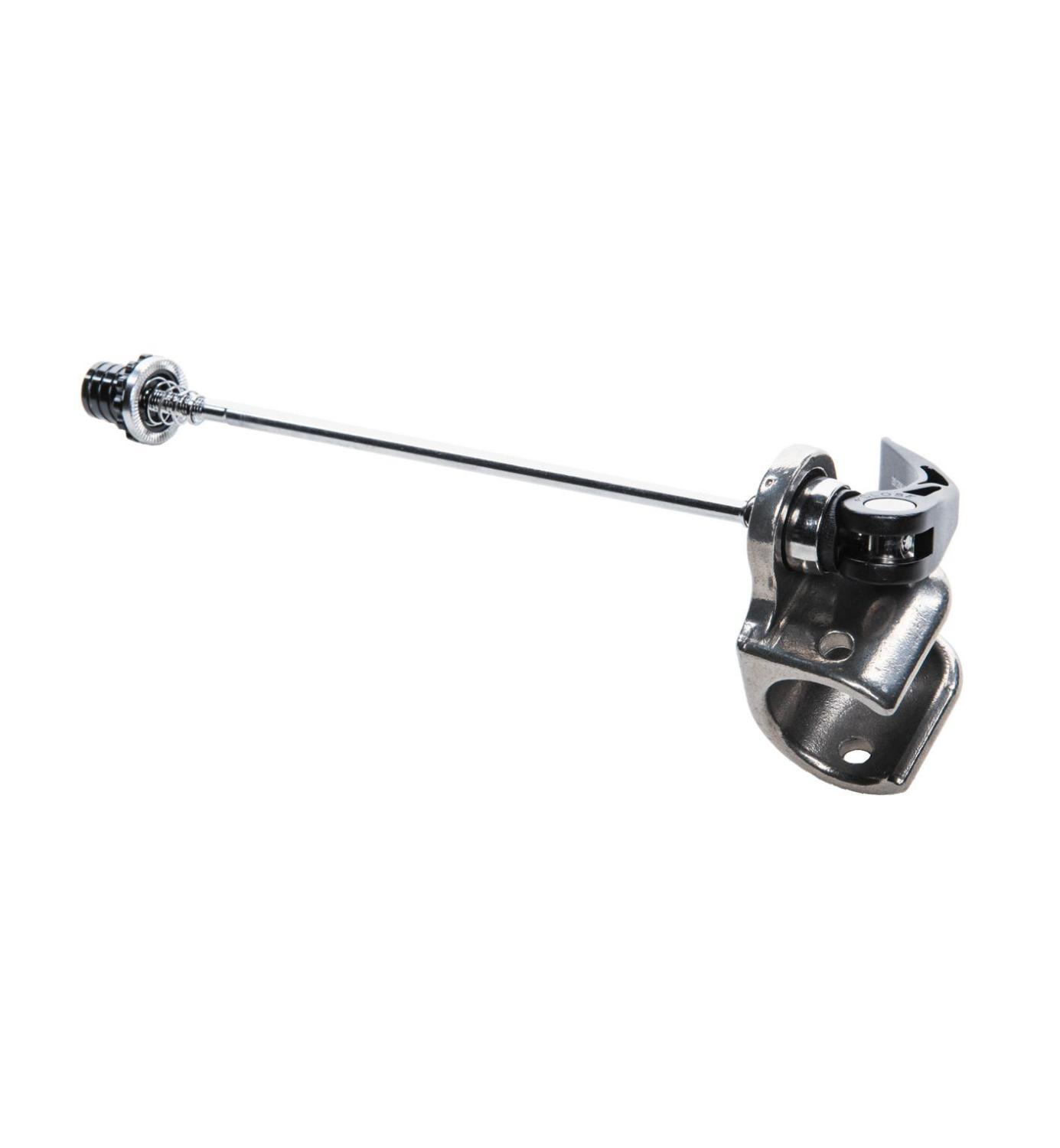 Pyöräilyvalmiin Thule rattaan saa helposti siirrettyä pyörästä toiseen pikairrotusvivulla. Mukana kiinnityskuppi ja erikoispitkä pikalinkku.