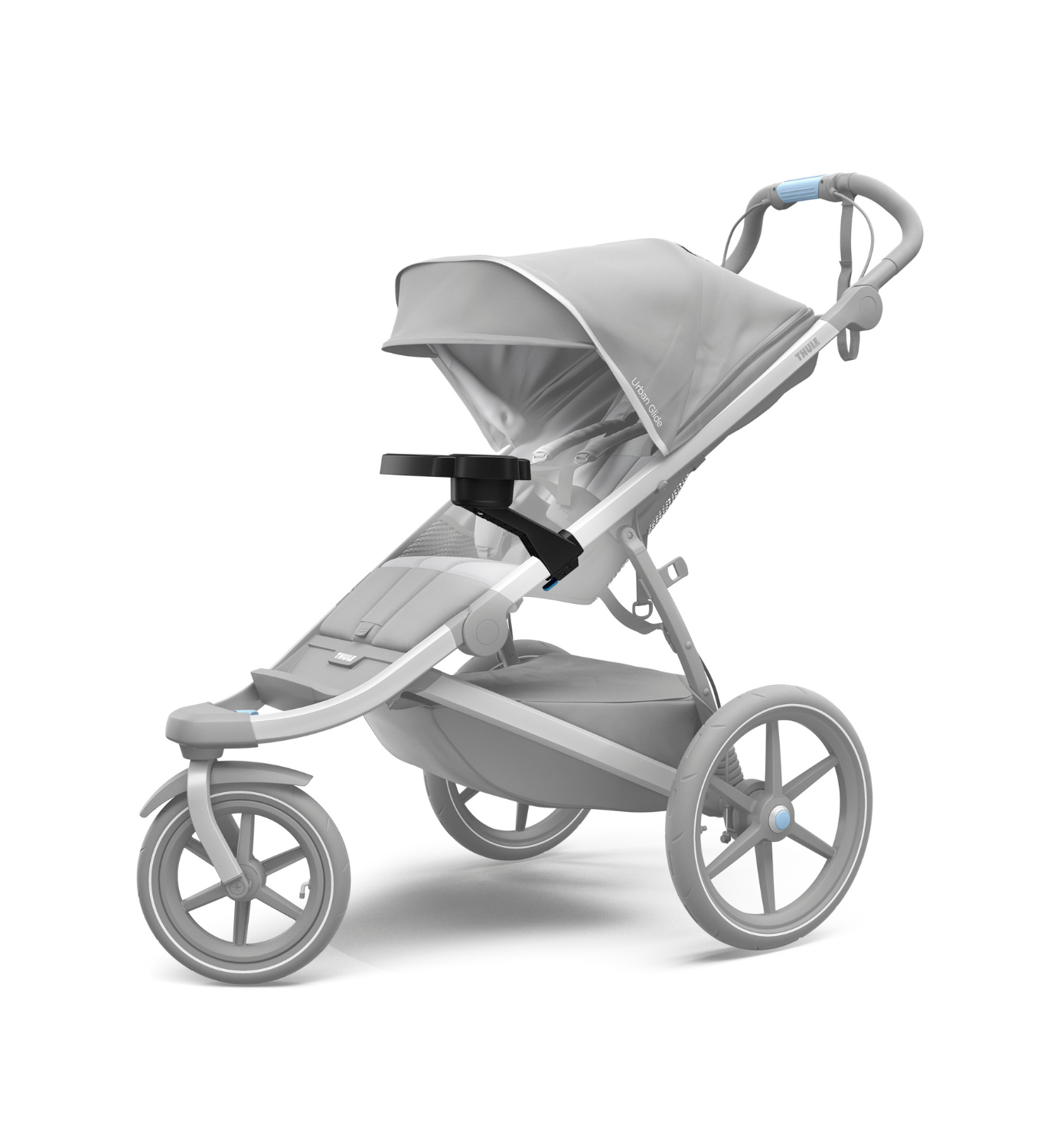 Mukiteline/Välipalatarjotin lapselle Thule Urban Glide juoksurattaaseen. Juotava pysyy lapsella helposti aina käden ulottuvilla.