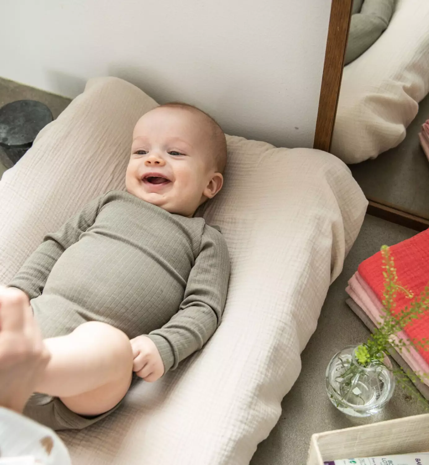 100% puuvillasta valmistettu, pehmeä, harsokankainen päällinen hoitoalustalle. Hoitoalusta on helppo suojata päällisellä, jonka saa näppärästi vaihdettua ja pestyä koneessa. Hoitoalustan päällinen on miellyttävän tuntuinen lapsen ihoa vasten. Pussimainen päällinen sopii noin 50 x 60 cm kokoisen tai vähän reilumman kokoisen alustan päälle ja pysyy kuminauhan ansiosta hyvin paikallaan.