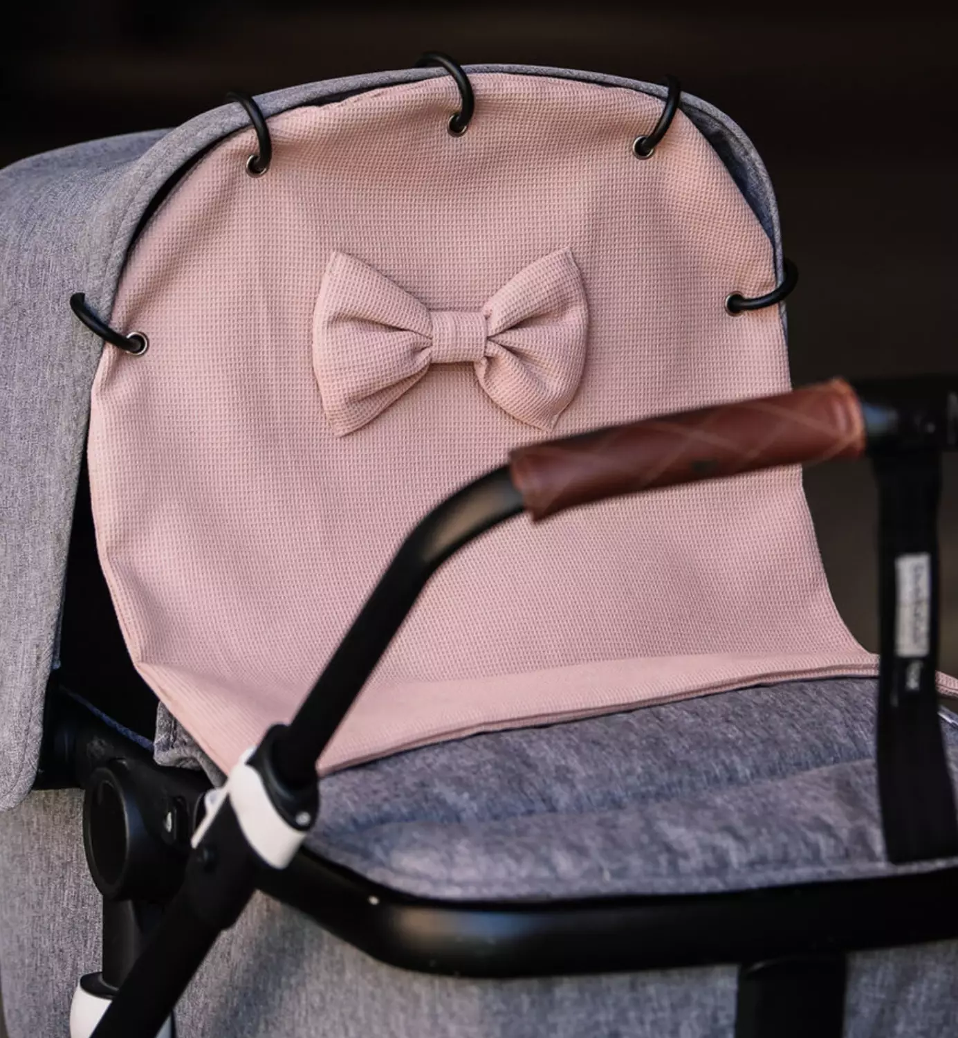 Suloista ja peittävää, vohvelikankaista vaunuverhoa koristaa rusetti.