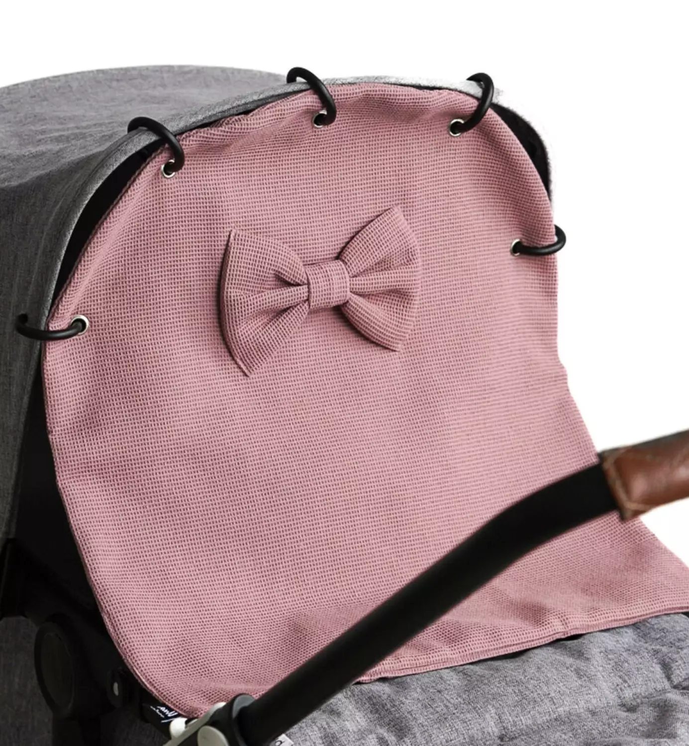 Suloista ja peittävää, vohvelikankaista vaunuverhoa koristaa rusetti.